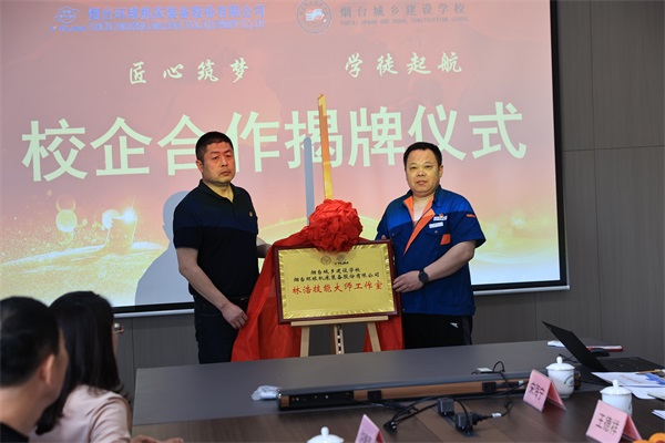 在校企雙方共同見證下,校企雙方共同為“現代學徒制試點單位”、“校企合作實訓基地”和“林浩技能大師工作室”揭牌。