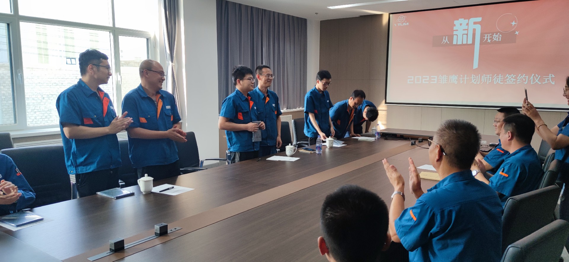 8月初,伴隨著5位應屆畢業生陸續到崗。公司策劃已久的技術人才引進培養工作計劃正式啟動。本次專項工作計劃定名為雛鷹計劃,由總經理親自部署,企管中心精心策劃組織,各單位通力配合。集中資源,大力推進技術人才的引進和培養,利用三到五年的時間徹底解決困擾公司發展的人才短缺問題。按照雛鷹計劃實施方案,企業管理中心8月完成了新員工的的入職培訓、導師的新人輔導培訓、師徒結對簽約儀式、歡迎冷餐會、周末參訪等工作。