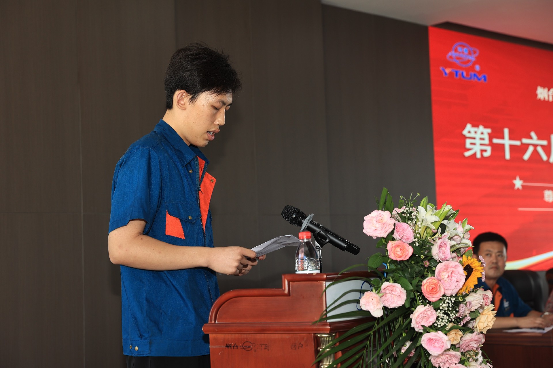9月9日上午,煙臺環球機床裝備股份有限公司第十六屆企業師傅節表彰大會在福潭路廠區四樓多功能廳召開。應邀在百忙中蒞臨企業指導工作的上級領導和合作院校領導有煙臺市總工會副主席張瑞鳳,福山區人大黨組副書記、副主任、區總工會主席畢建宏,煙臺汽車工程職業學院黨委副書記曲耀春,區總工會黨組書記、常務副主席林麗云,區人社局勞動關系科科長姜春娟。公司董事長、總經理張萬謀、黨委書記、常務副總經理崔文剛出席會議并在主席臺就座;來自全公司各中心、事業部和子公司的近160名員工出席會議。崔文剛主持會議并宣讀表彰決定。張瑞鳳副主席、畢建宏主席和張萬謀董事長分別講話,對公司技能人才培養工作提出要求,寄予厚望。