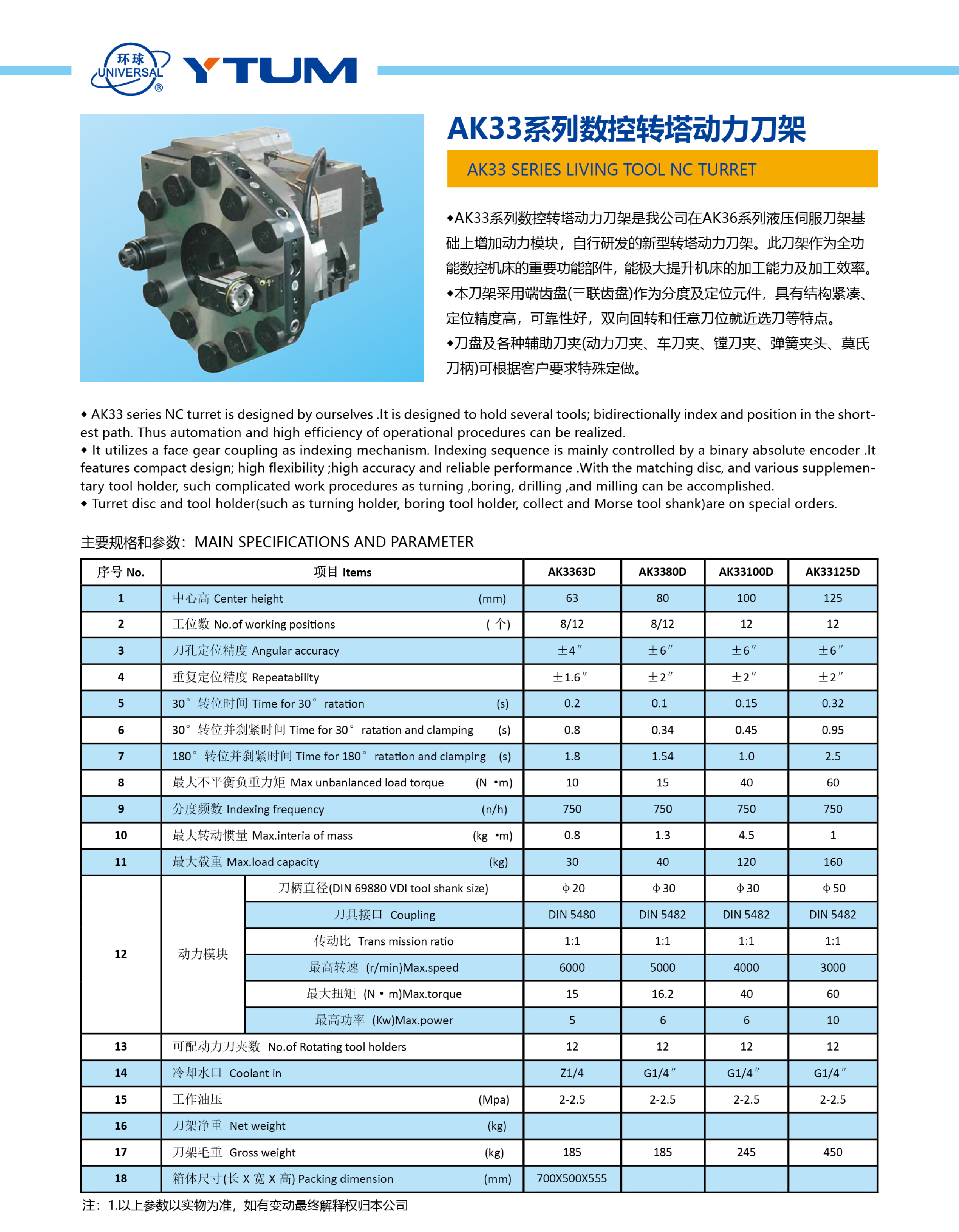 AK33系列數(shù)控轉(zhuǎn)塔動(dòng)力刀架